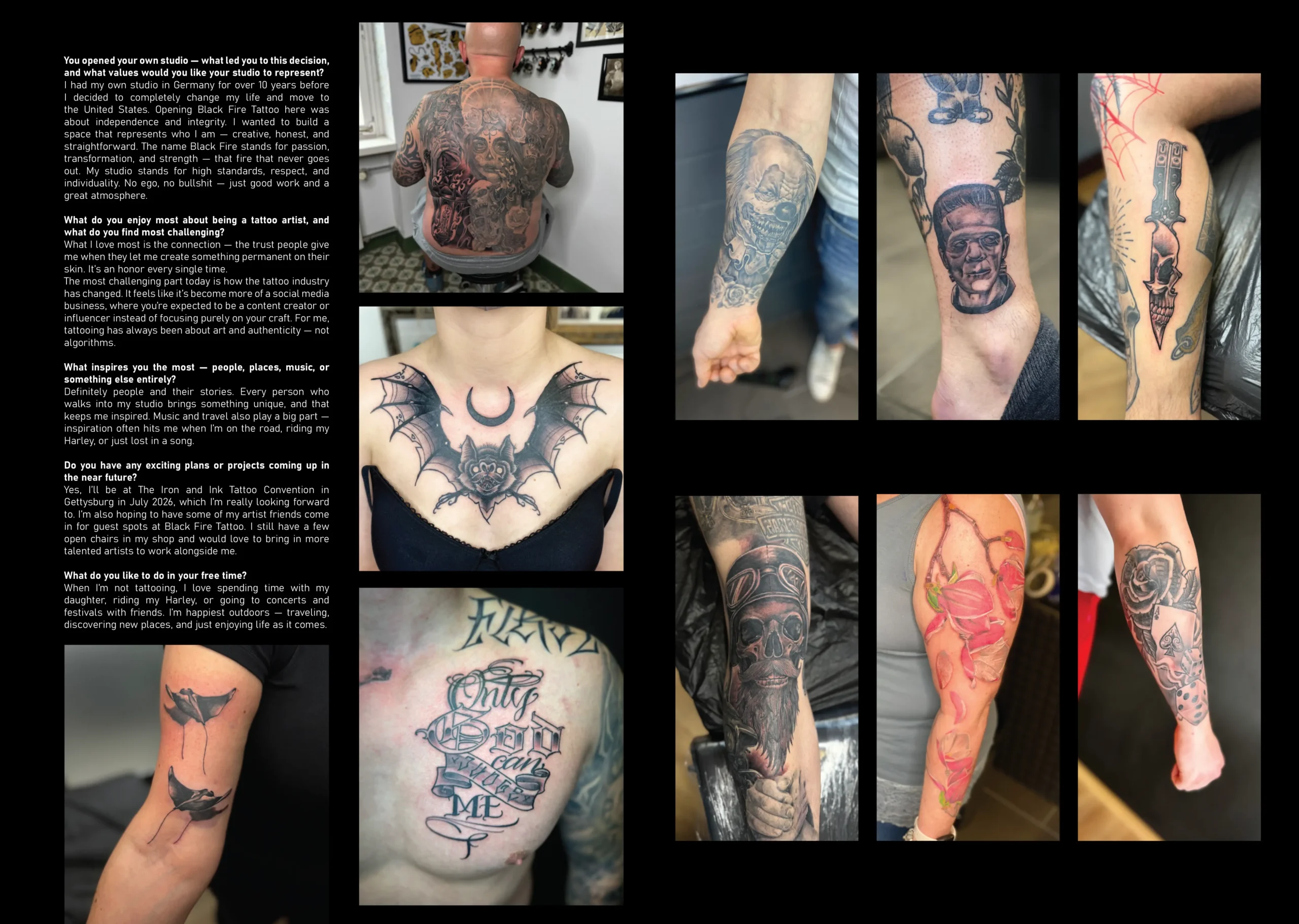 Ink Legends Magazine interviewed me about my path, my style, and the mindset behind Black Fire Tattoo. I share what I focus on in every piece, why details matter, and how I make sure a tattoo still looks right years from now. You can read the full interview below.